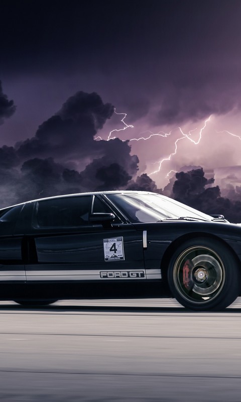 Ford GT Black Clouds Lightning Wallpaper - 480x800