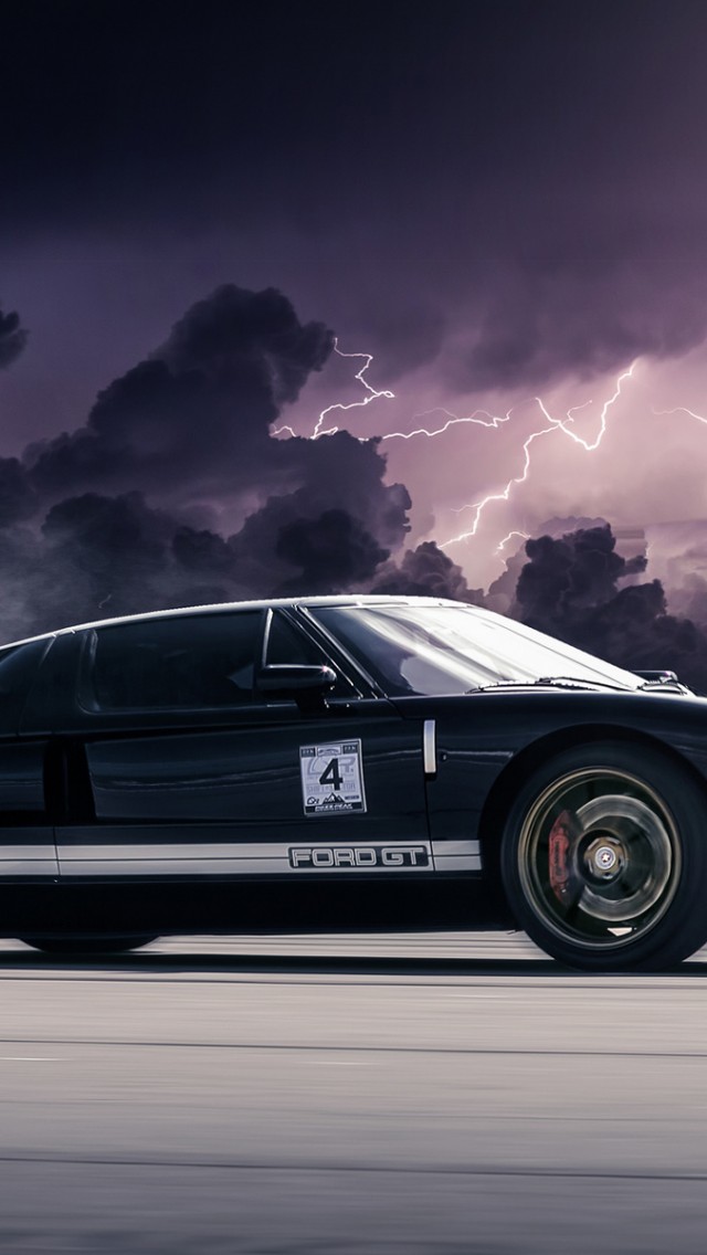 Ford GT Black Clouds Lightning Wallpaper - 640x1136