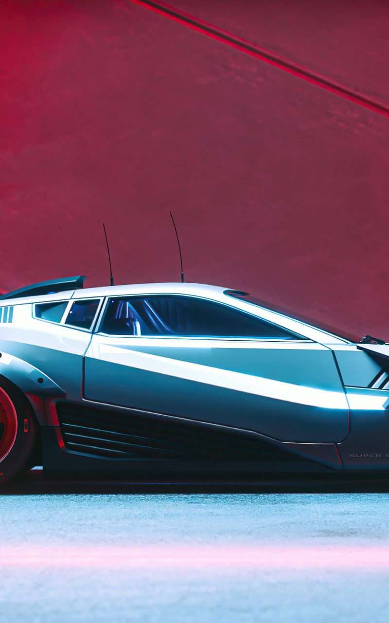 Silver Racing Car Digital Art Wallpaper - 800x1280