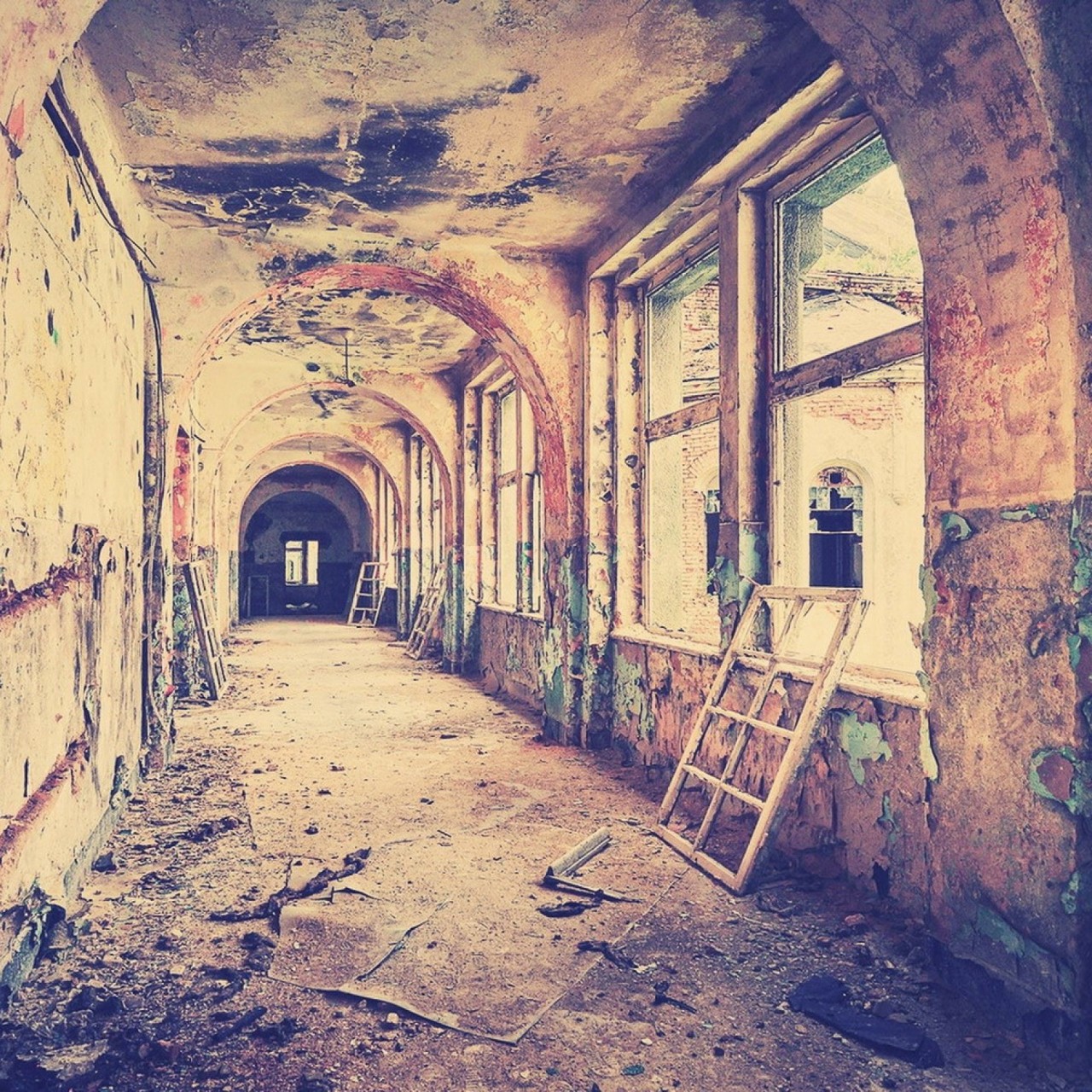 Abandoned Hallway Building Wallpaper - 1280x1280