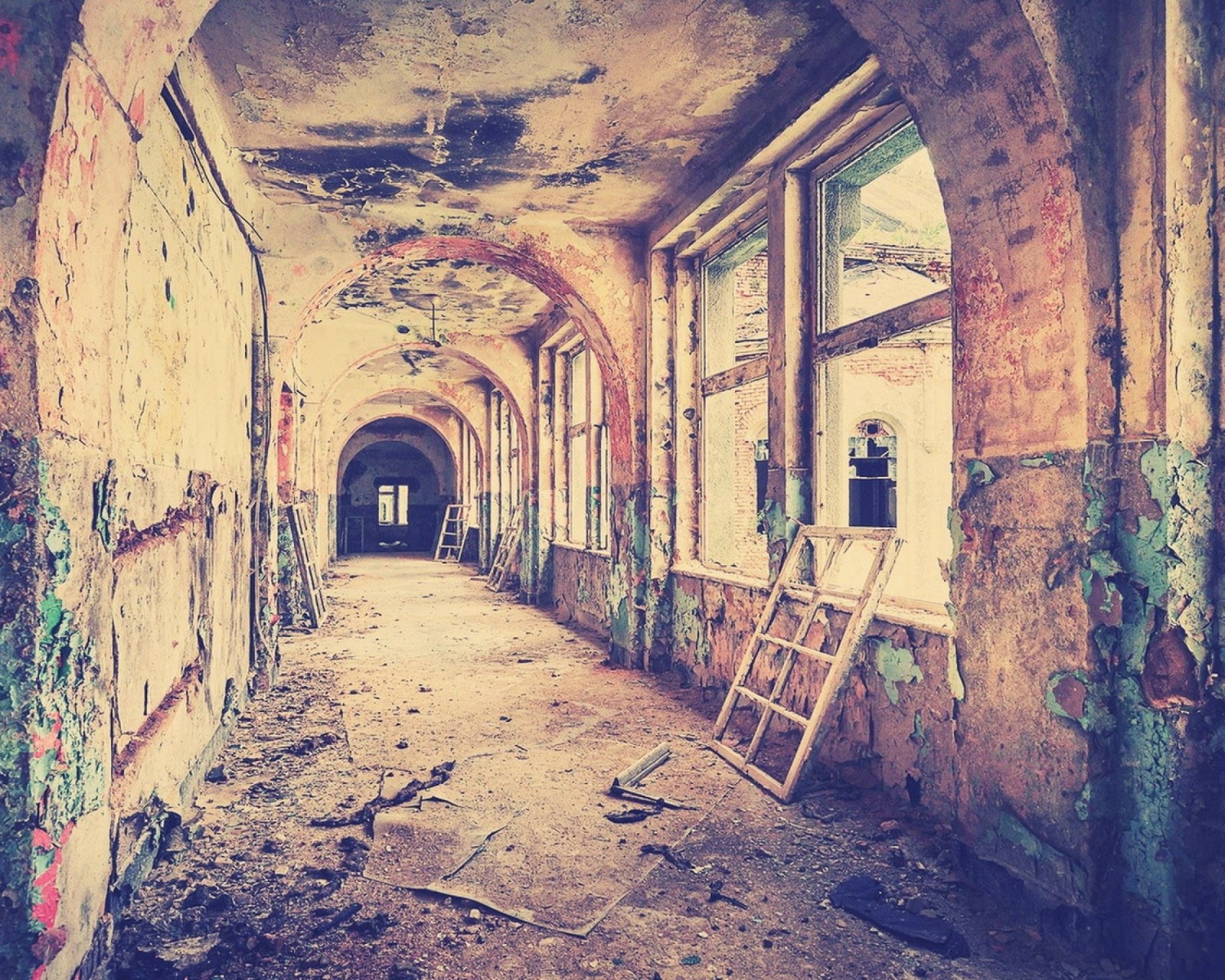 Abandoned Hallway Building Wallpaper - 1600x1280