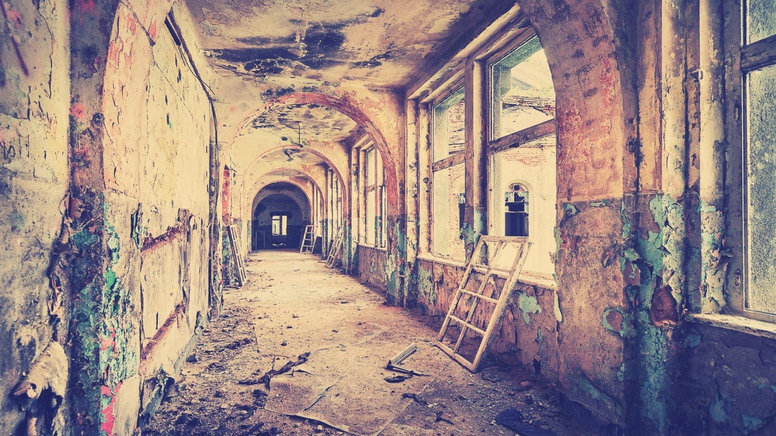 Abandoned Hallway Building Wallpaper - 1600x900