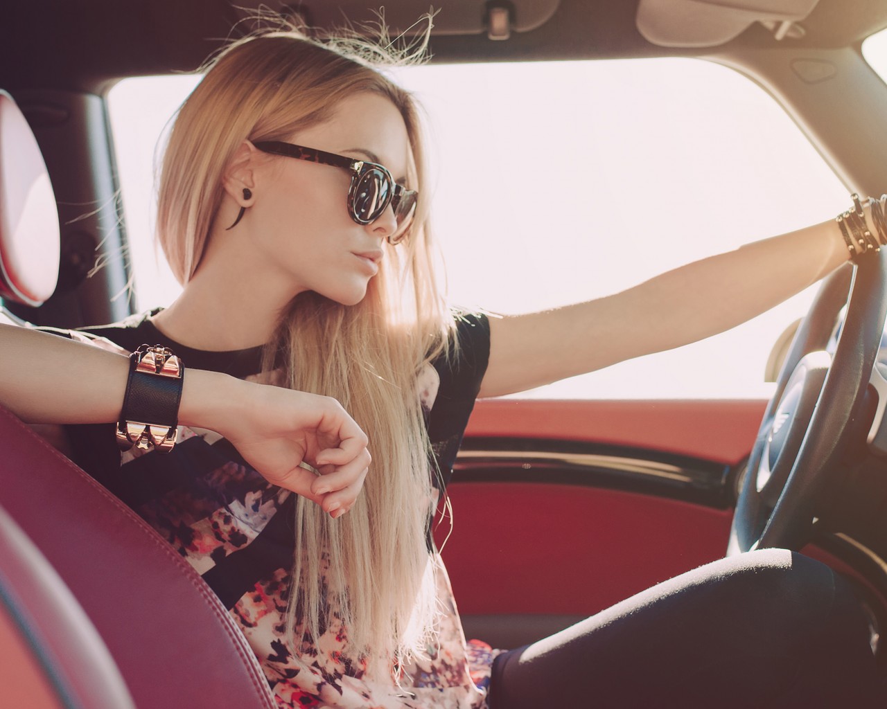 Blonde Girl Car Interior Wallpaper - 1280x1024