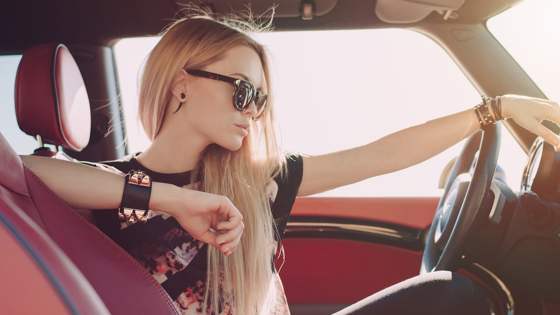 Blonde Girl Car Interior Wallpaper - 1920x1080