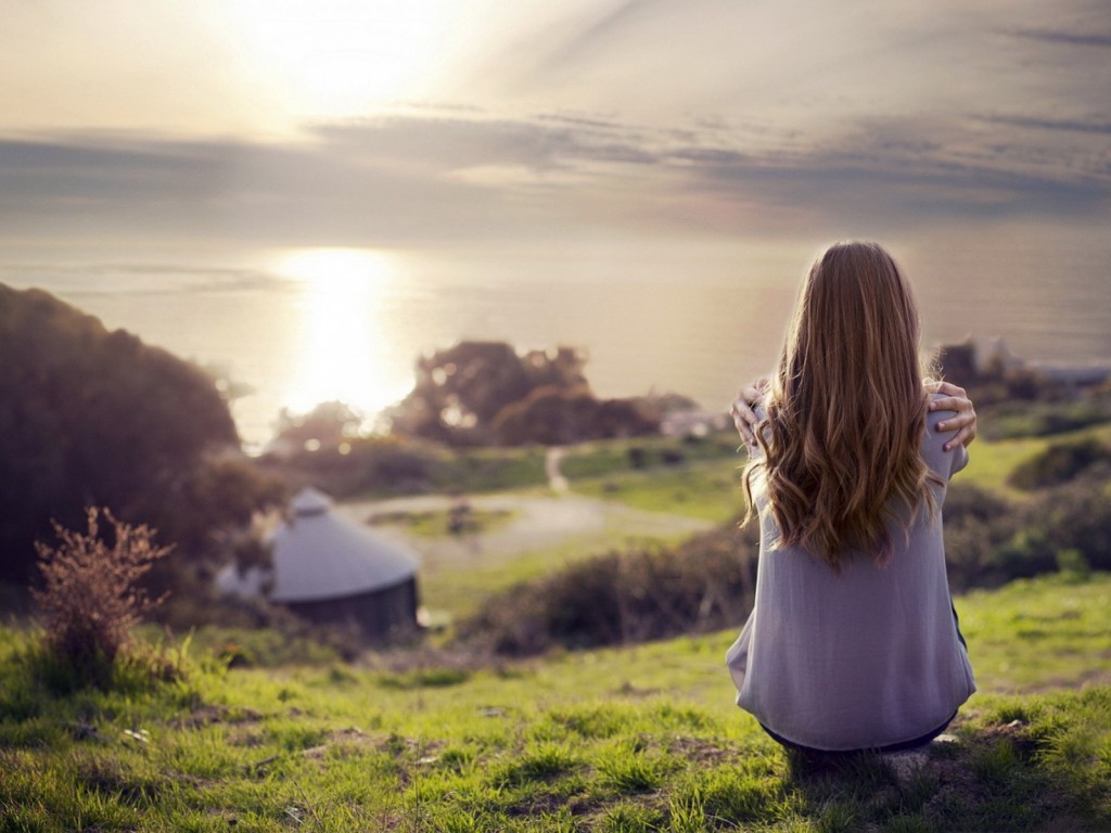 Lonely Girl Mood Sunset Wallpaper - 1024x768
