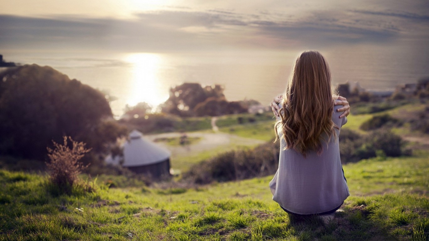 Lonely Girl Mood Sunset Wallpaper - 1366x768