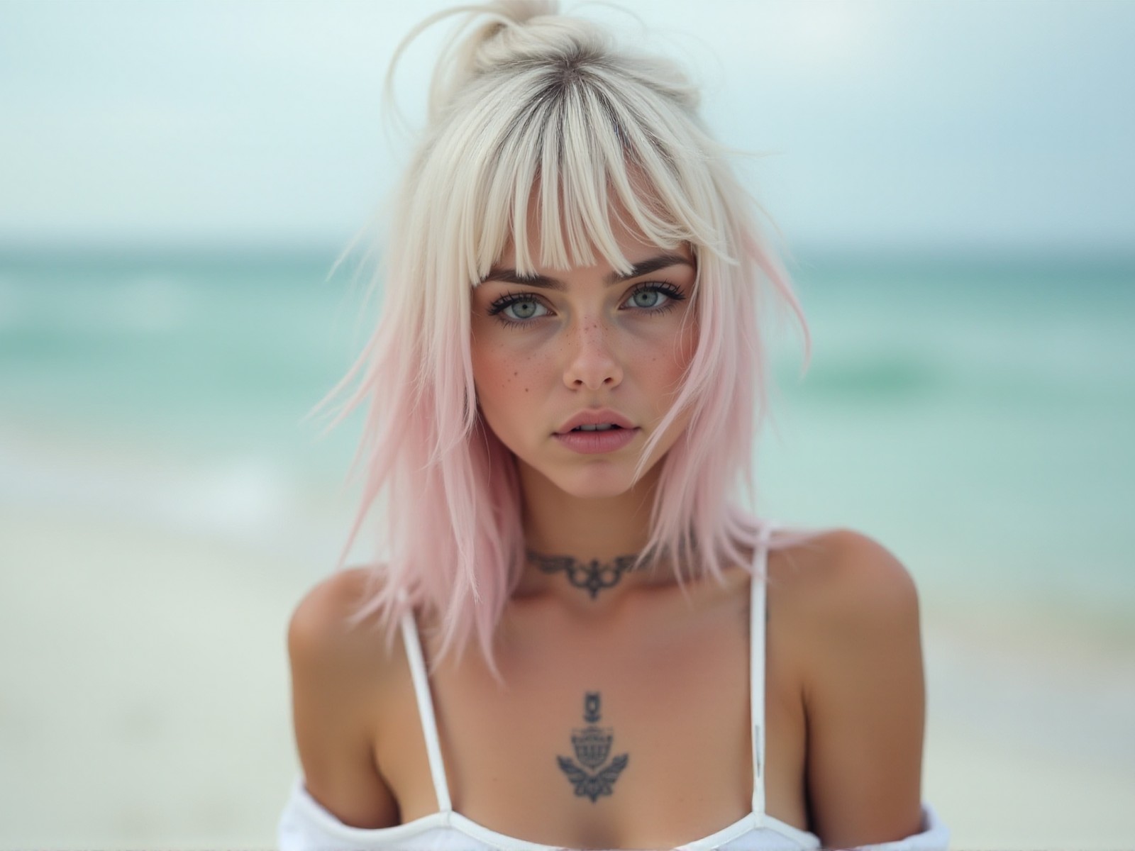 Blonde Girl Neck Tattoo Beach Wallpaper - 1600x1200