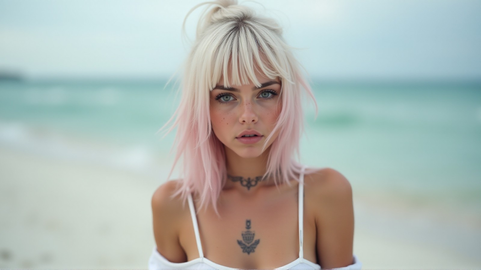Blonde Girl Neck Tattoo Beach Wallpaper - 1600x900