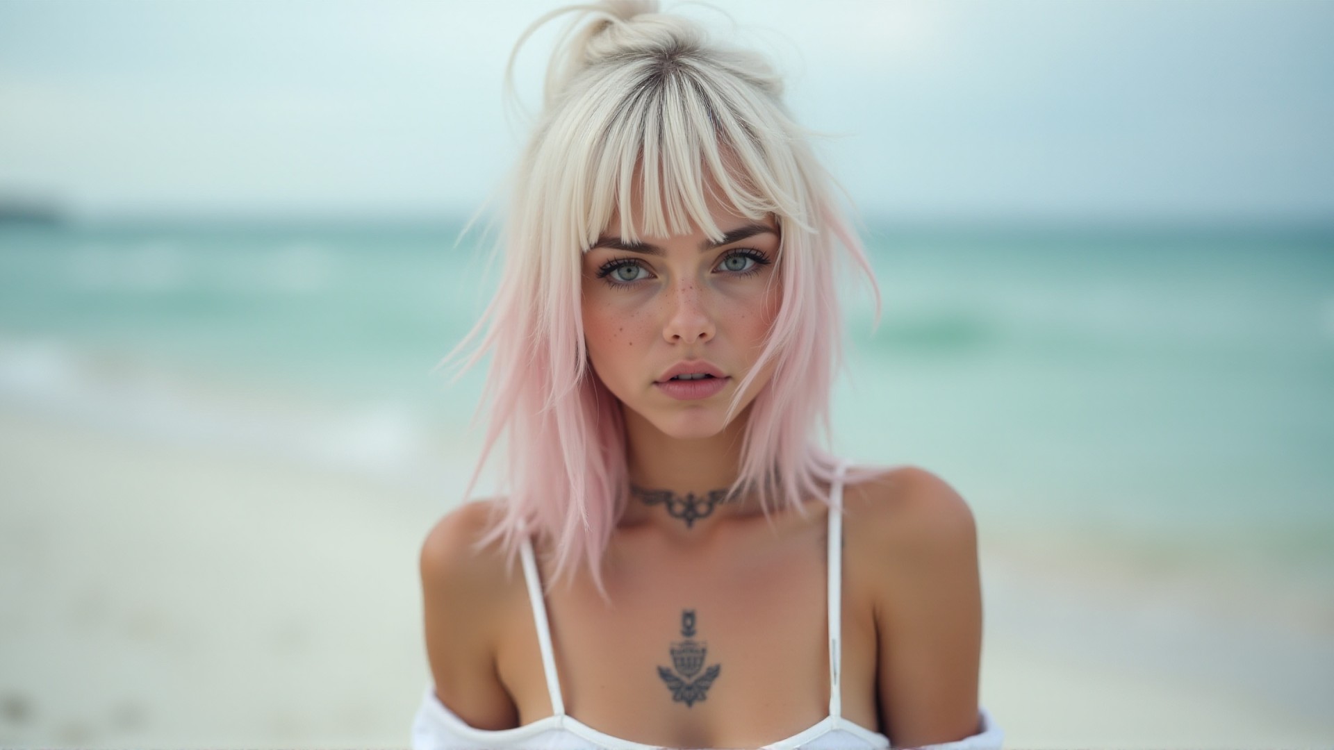 Blonde Girl Neck Tattoo Beach Wallpaper - 1920x1080