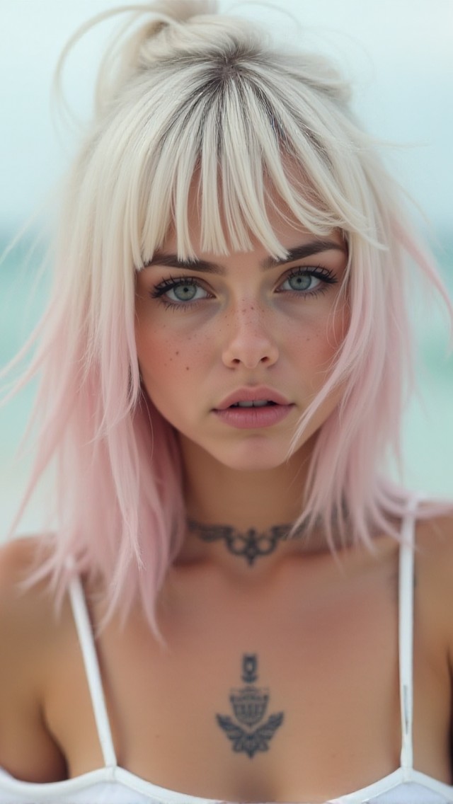 Blonde Girl Neck Tattoo Beach Wallpaper - 640x1136