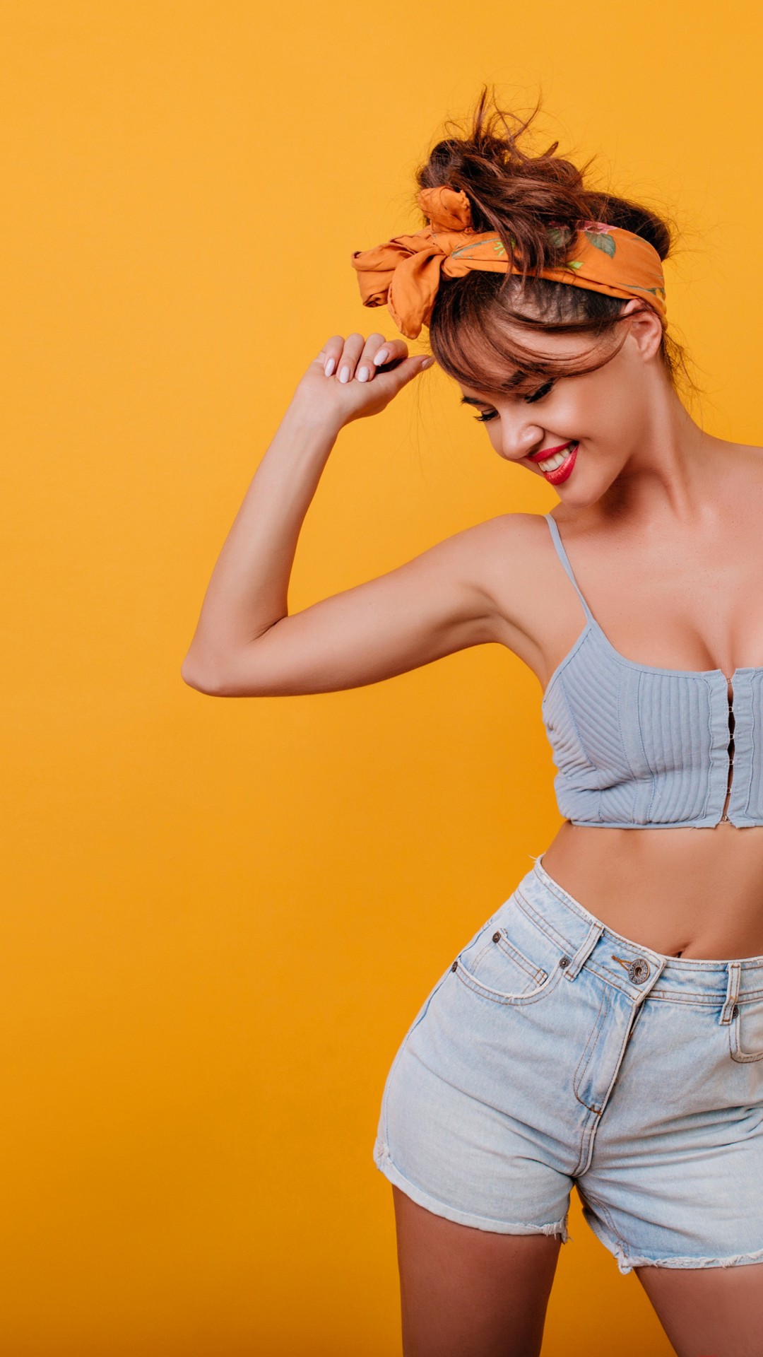 Girl Denim Shorts Yellow Wallpaper - 1080x1920