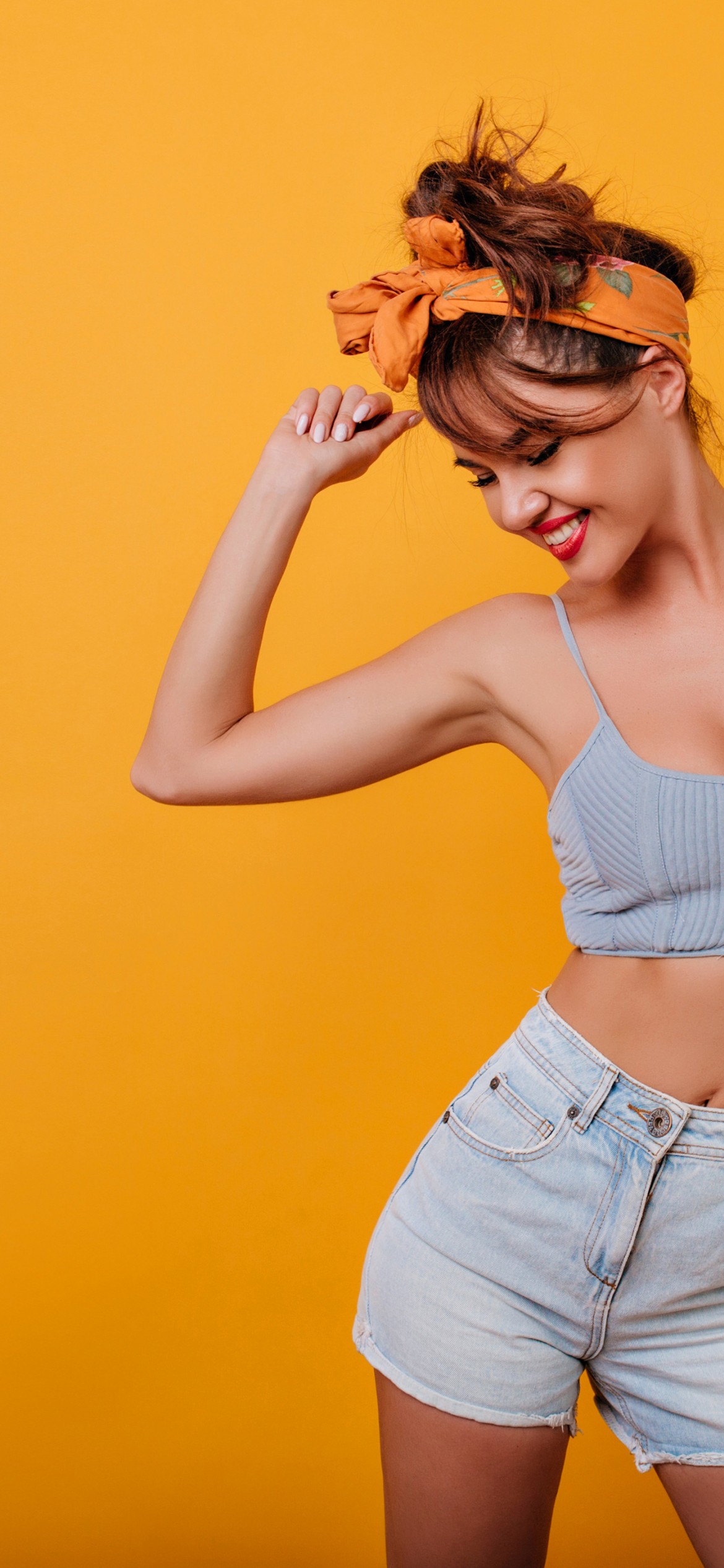 Girl Denim Shorts Yellow Wallpaper - 1170x2532