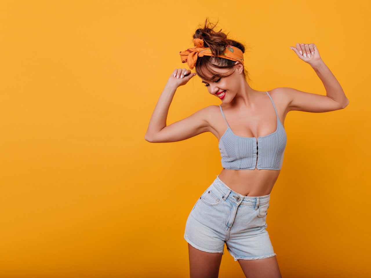 Girl Denim Shorts Yellow Wallpaper - 1280x960