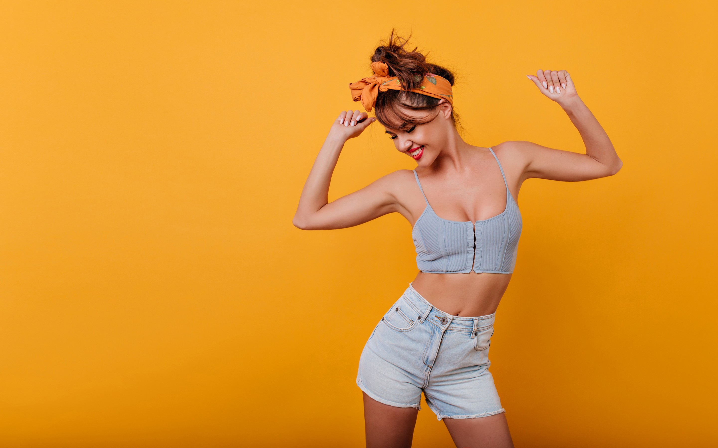 Girl Denim Shorts Yellow Wallpaper - 2880x1800