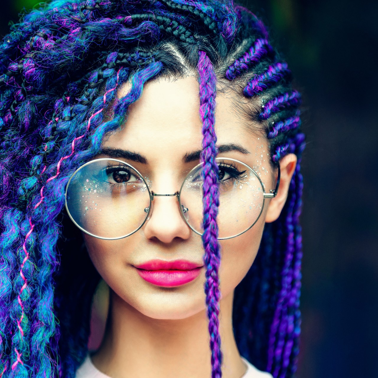 Girl Glasses Blue Hair Portrait Wallpaper - 1280x1280
