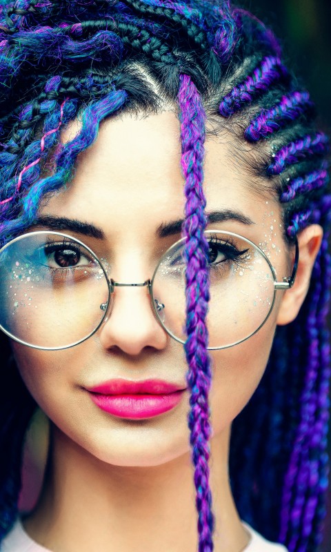 Girl Glasses Blue Hair Portrait Wallpaper - 480x800