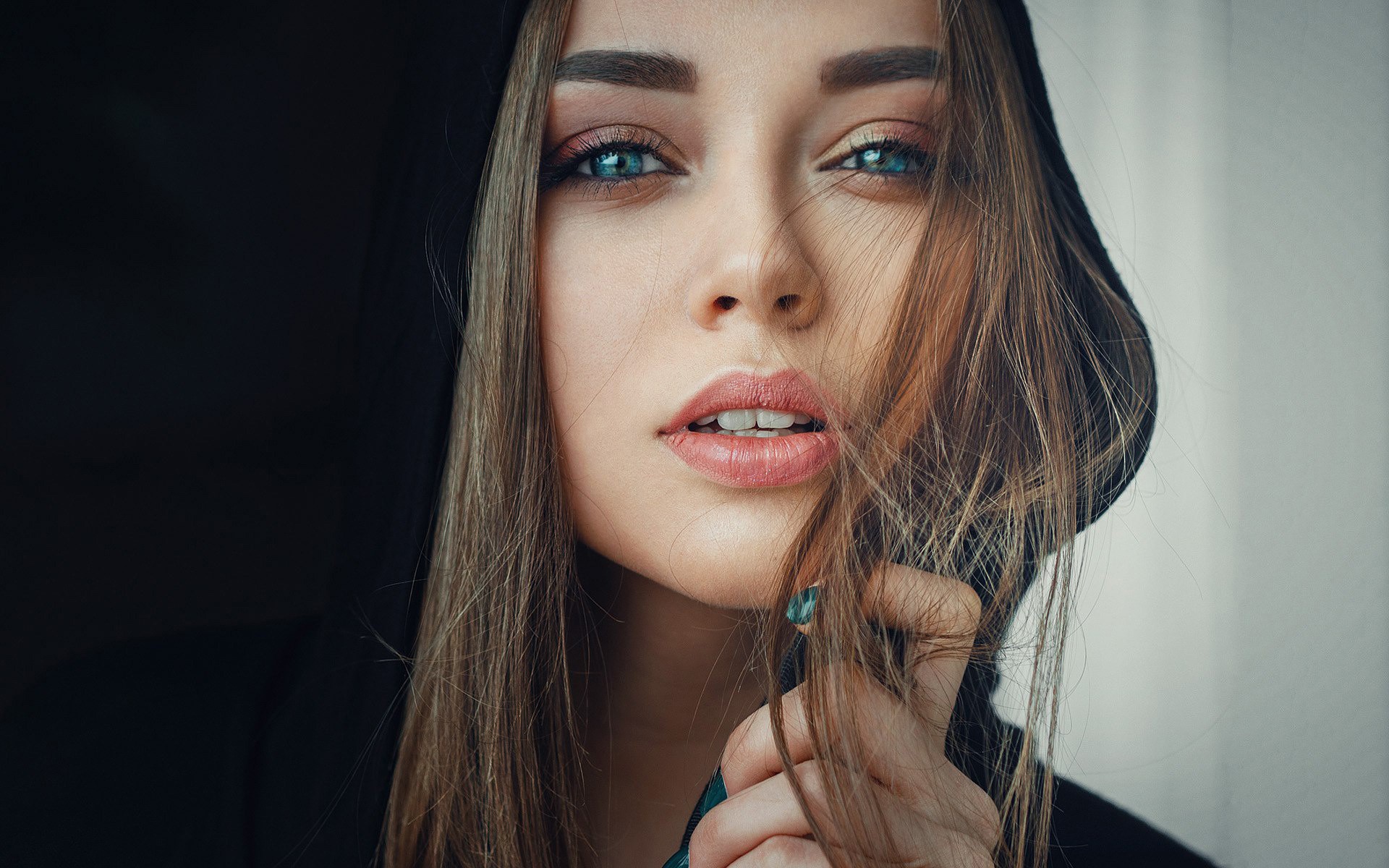 Katya Blue Eyes Lips Black Hoodie Wallpaper - 1920x1200