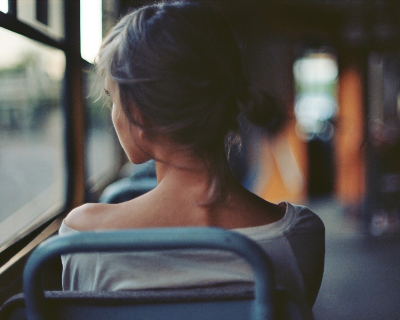 Lonely Girl Bus Mood Wallpaper - 1280x1024