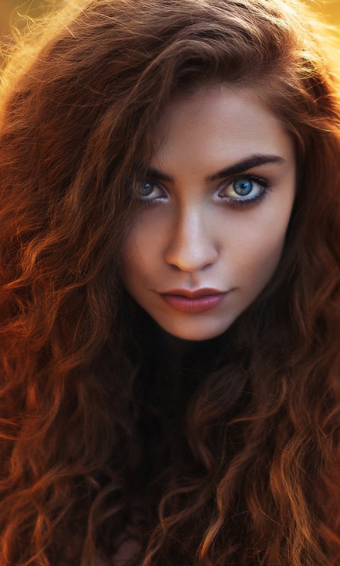 Redhead Beauty Curly Hair Blue Eyes Wallpaper - 480x800
