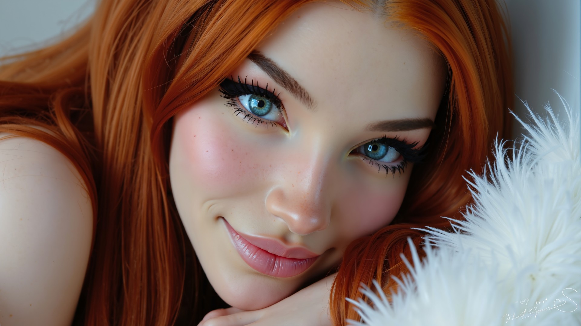 Redhead Woman Portrait Digital Art Wallpaper - 1920x1080