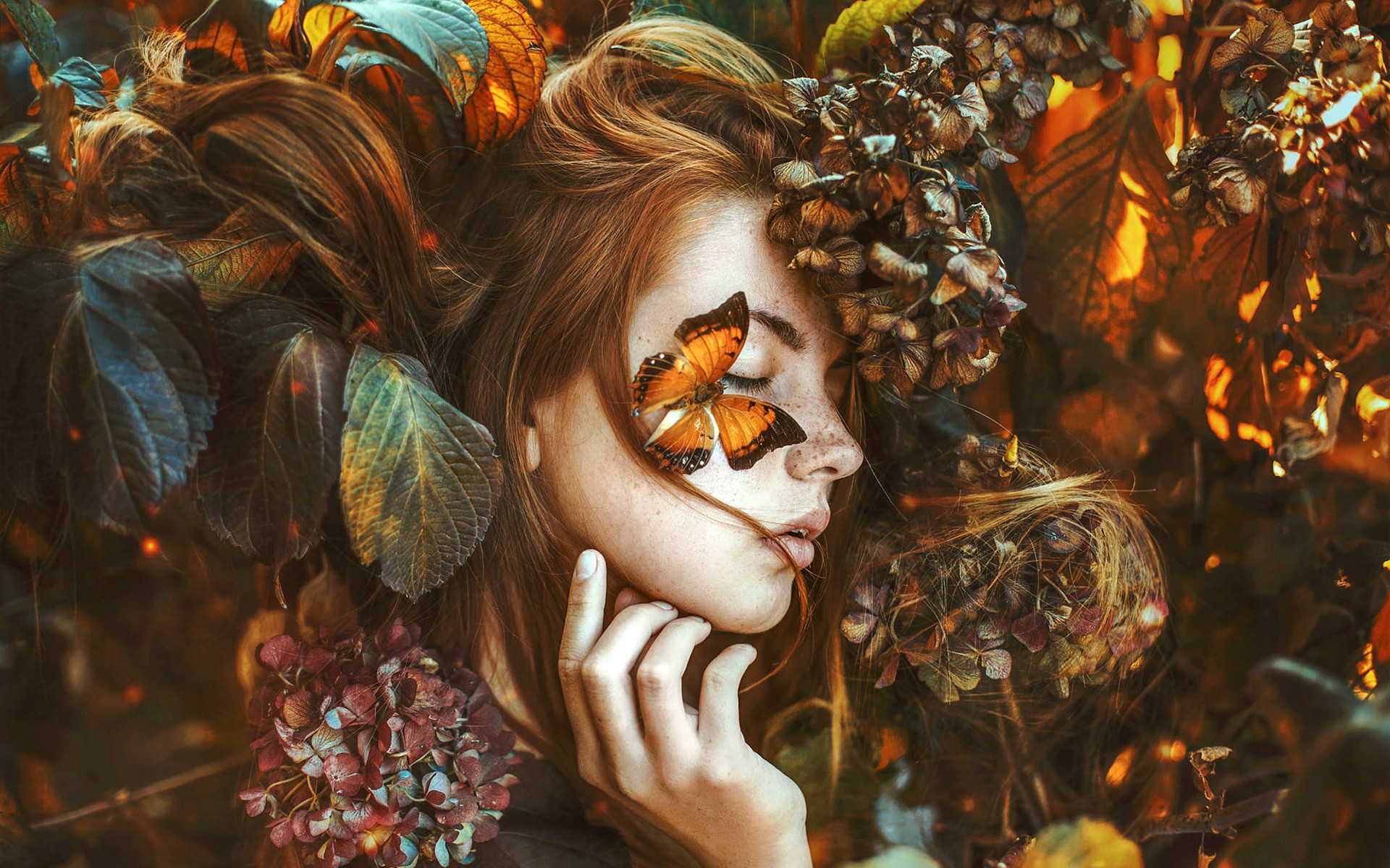 Redhead Women Mood Autumn Butterfly Wallpaper - 1920x1200