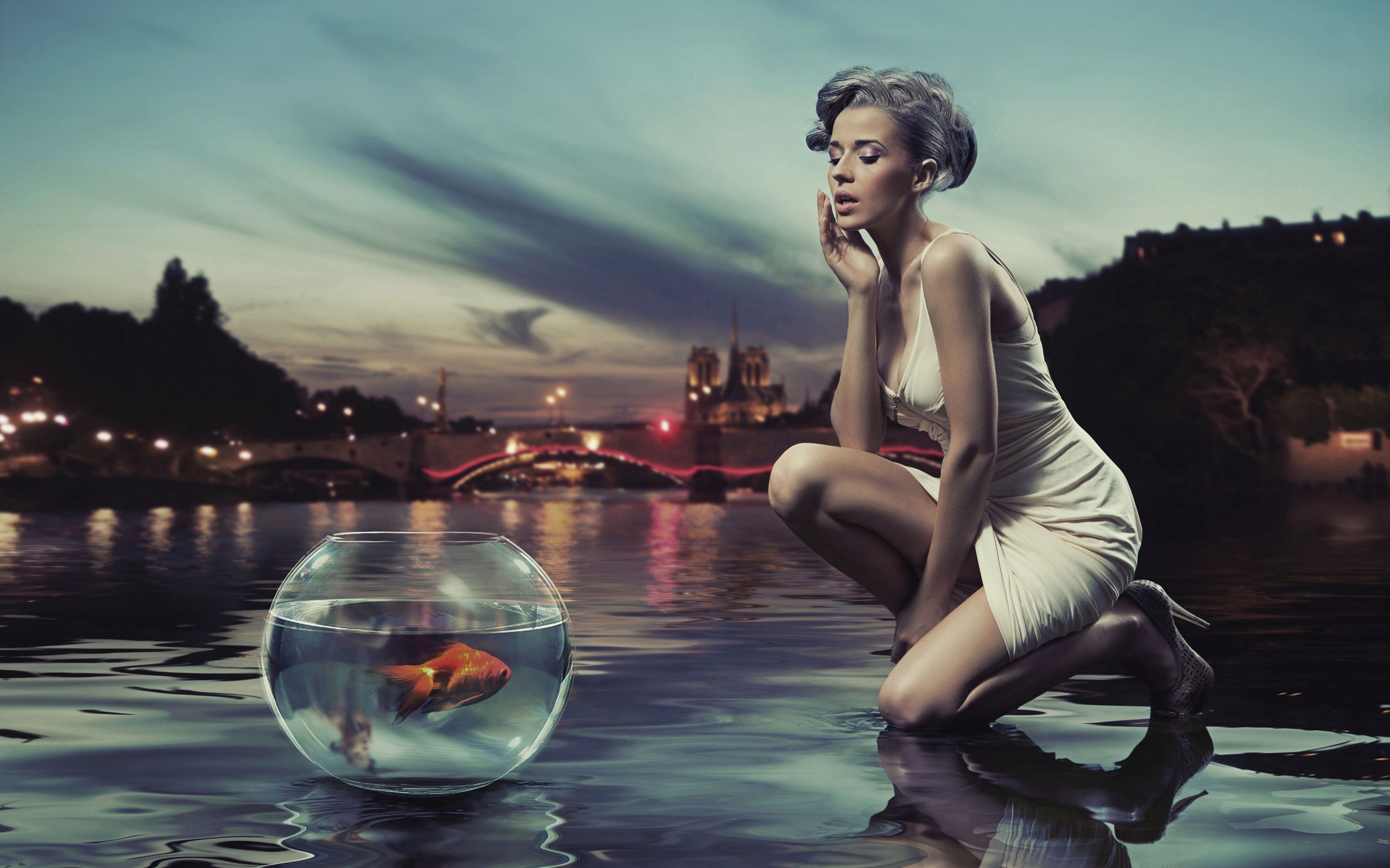 Woman Fashion Gold Fish Bowl Wallpaper - 2560x1600