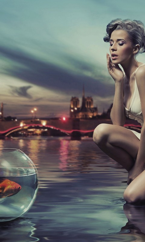 Woman Fashion Gold Fish Bowl Wallpaper - 480x800