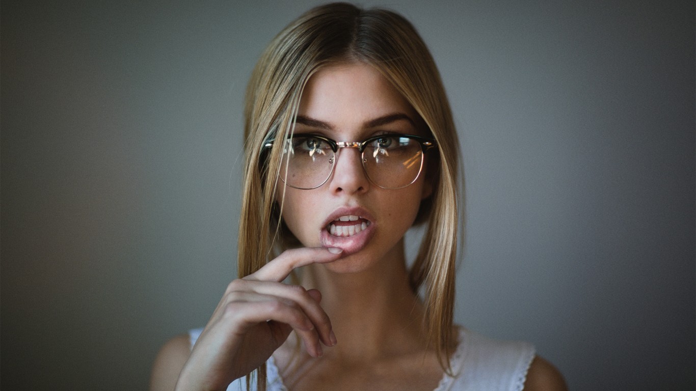 Women Lips Glasses Portrait Wallpaper - 1366x768