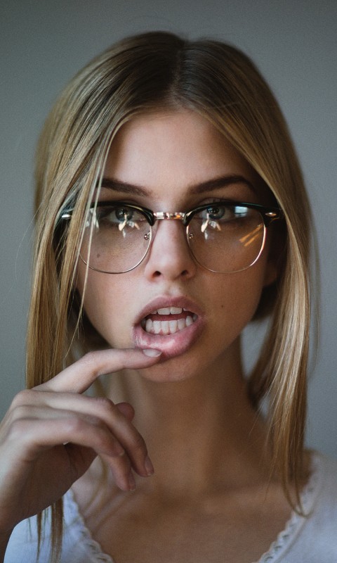 Women Lips Glasses Portrait Wallpaper - 480x800