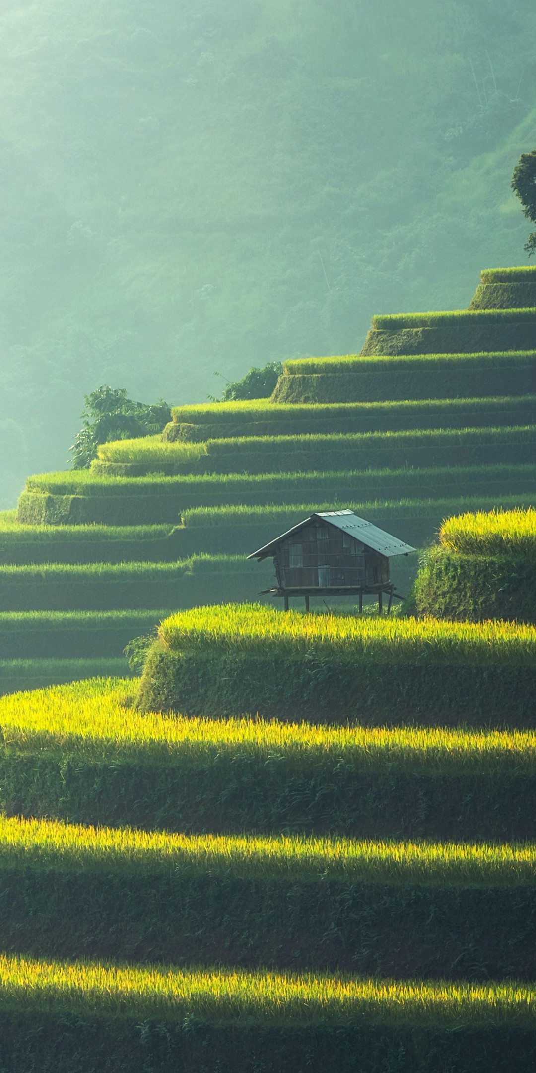 Asia House Rice Fields Landscape Wallpaper - 1080x2160