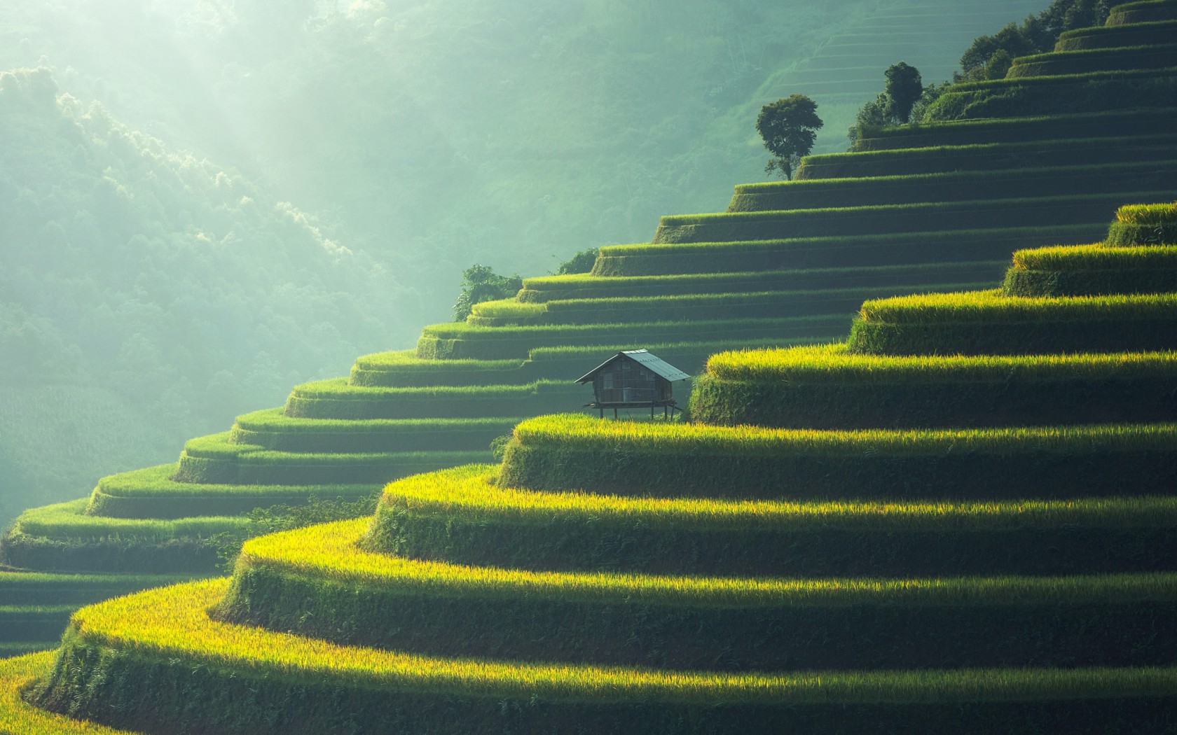 Asia House Rice Fields Landscape Wallpaper - 1680x1050
