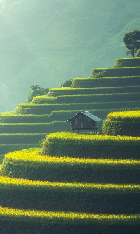 Asia House Rice Fields Landscape Wallpaper - 480x800