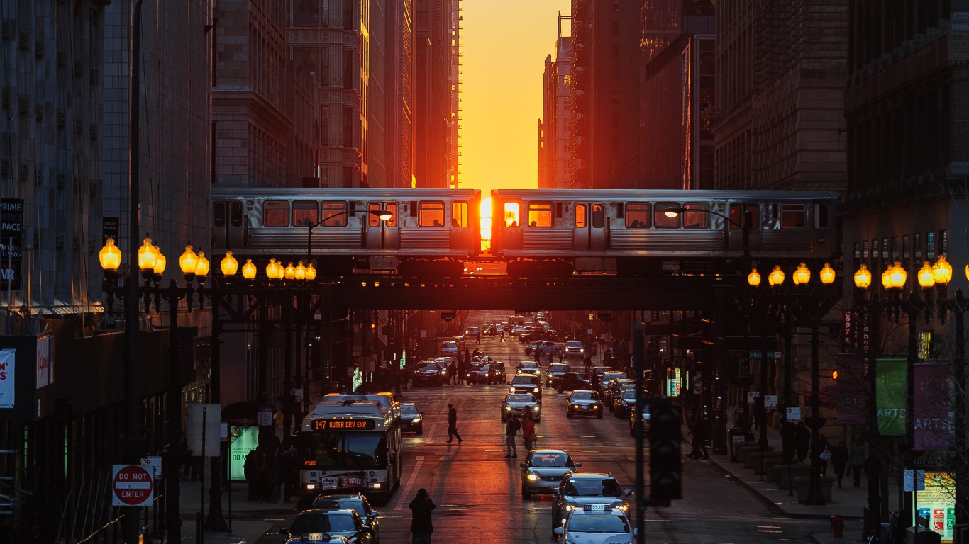 Chicago Streets Cars Train Sun Wallpaper - 1366x768