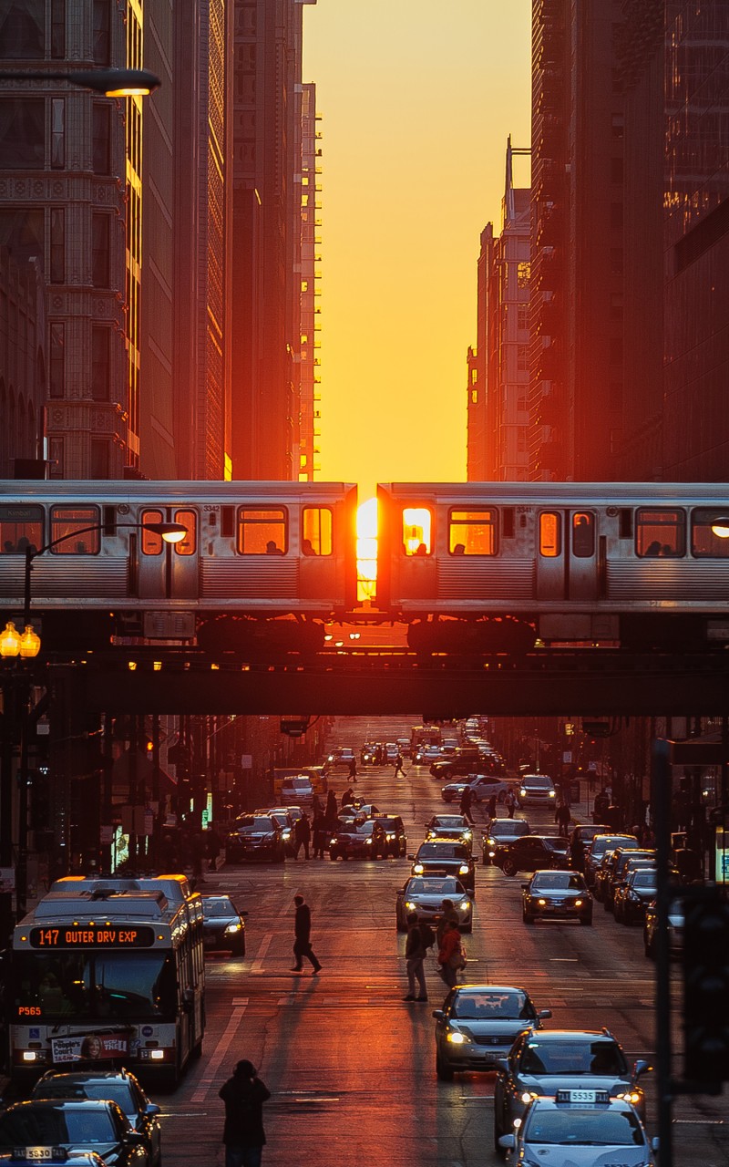 Chicago Streets Cars Train Sun Wallpaper - 800x1280