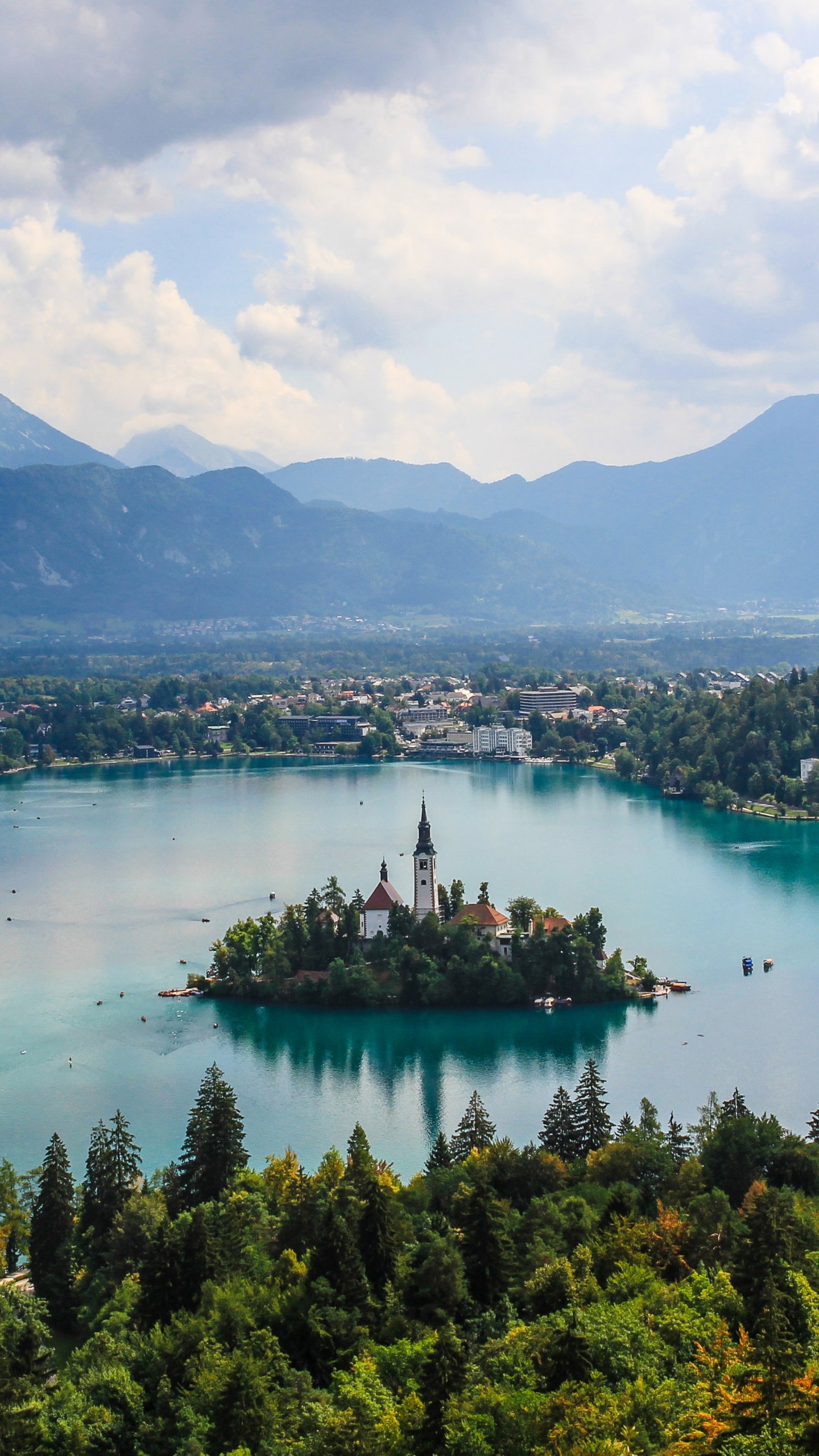 Lake Bled Mountains Forest Slovenia Wallpaper - 1440x2560