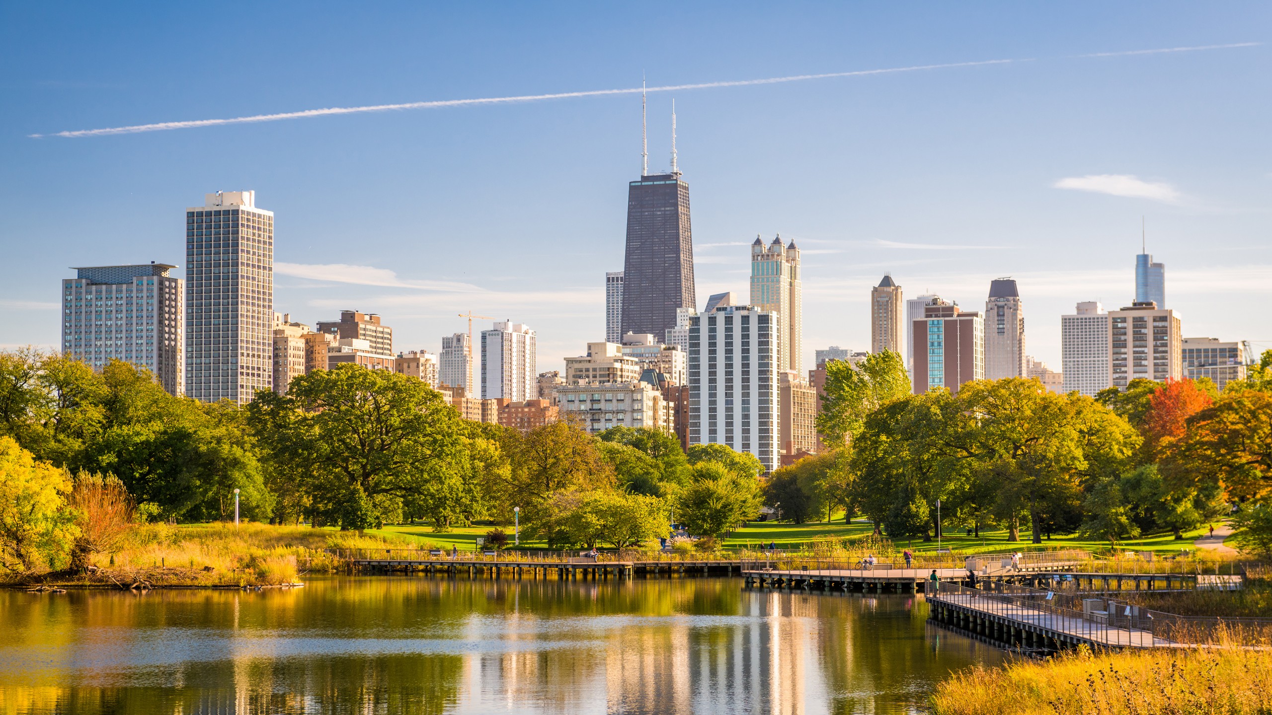 Lincoln Park Chicago Buildings Trees Wallpaper - 2560x1440