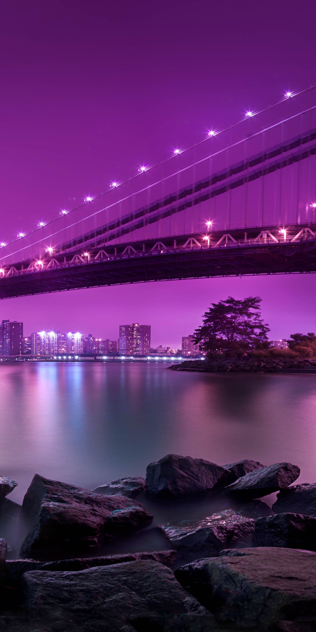 Manhattan Bridge New York Purple Sky Wallpaper - 1080x2160