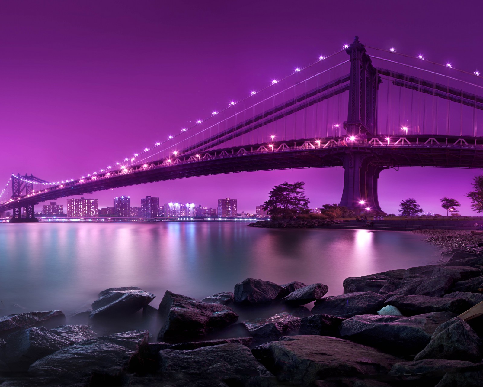Manhattan Bridge New York Purple Sky Wallpaper - 1600x1280