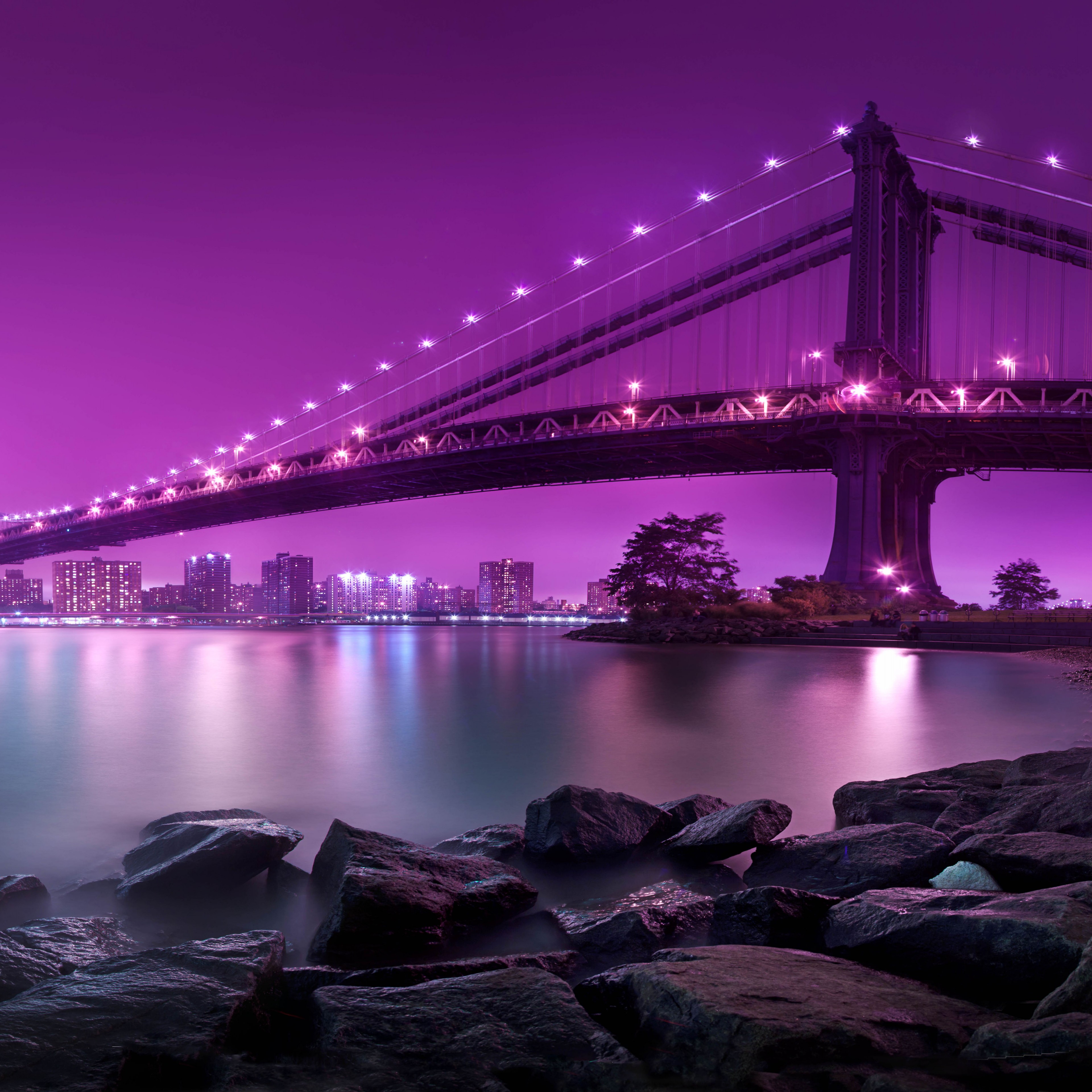 Manhattan Bridge New York Purple Sky Wallpaper - 3840x3840