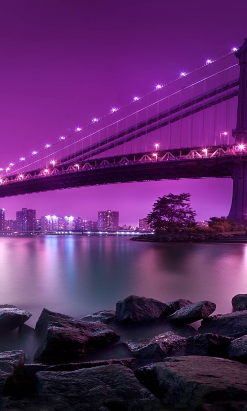 Manhattan Bridge New York Purple Sky Wallpaper - 480x800