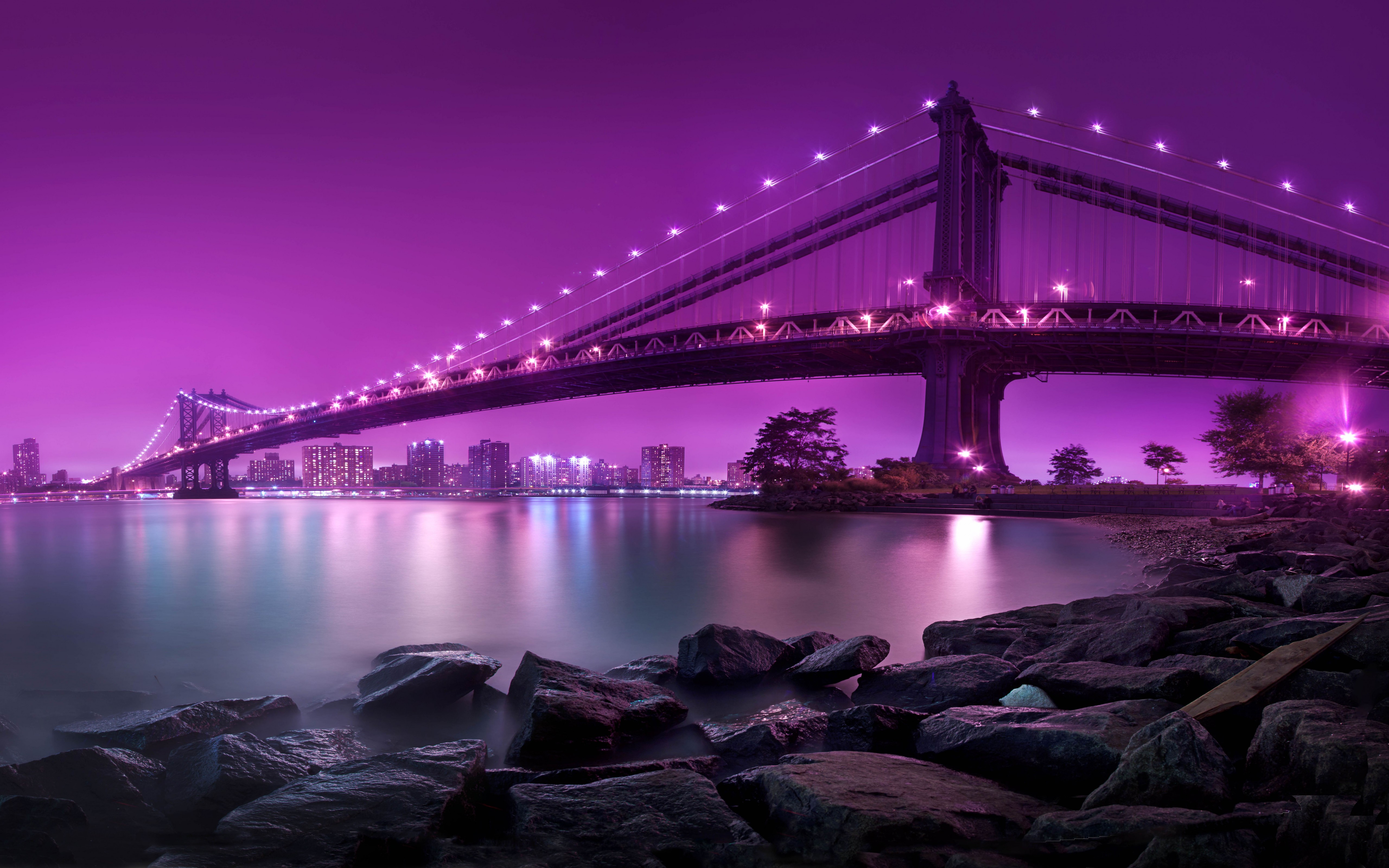 Manhattan Bridge New York Purple Sky Wallpaper - 5120x3200