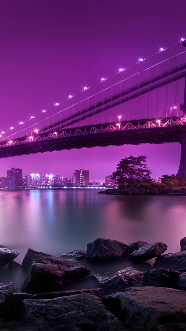 Manhattan Bridge New York Purple Sky Wallpaper - 750x1334