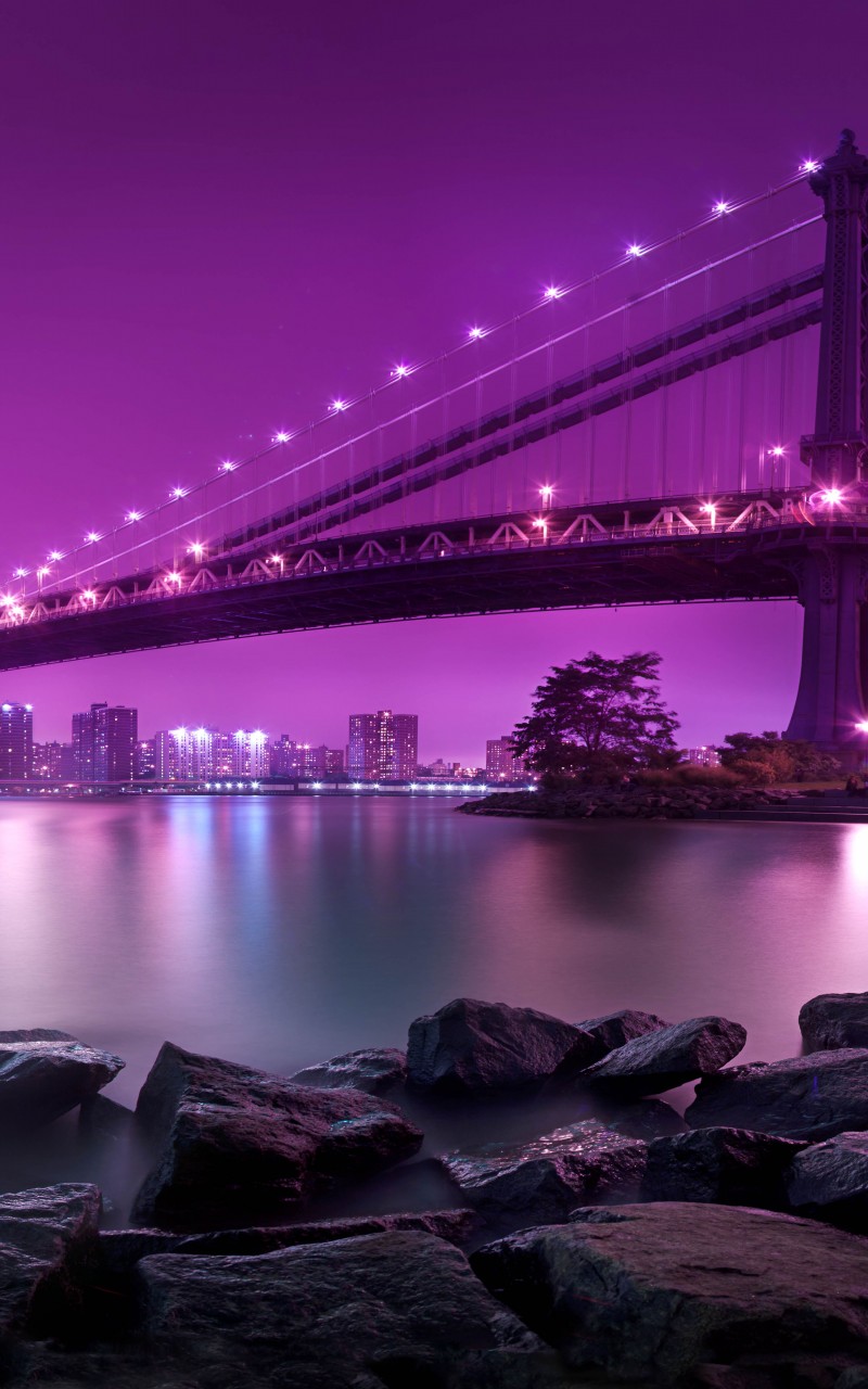 Manhattan Bridge New York Purple Sky Wallpaper - 800x1280