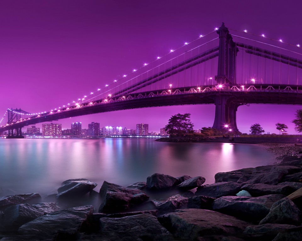 Manhattan Bridge New York Purple Sky Wallpaper - 960x768