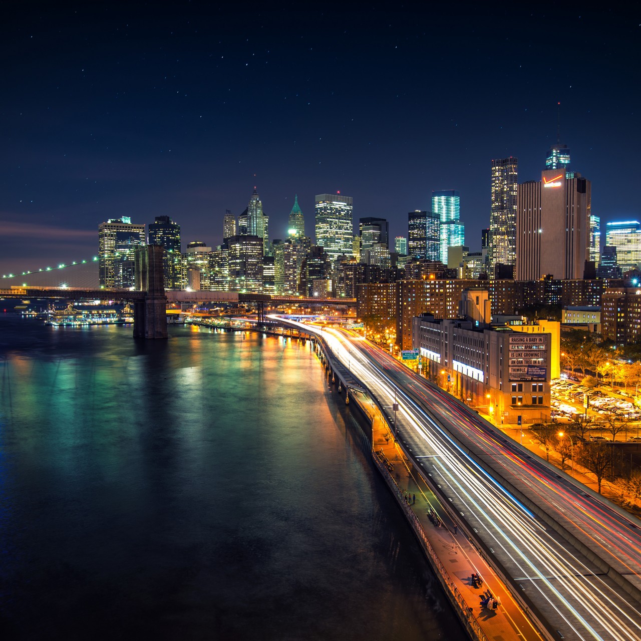 New York Cityscape Brooklyn Bridge Wallpaper - 1280x1280