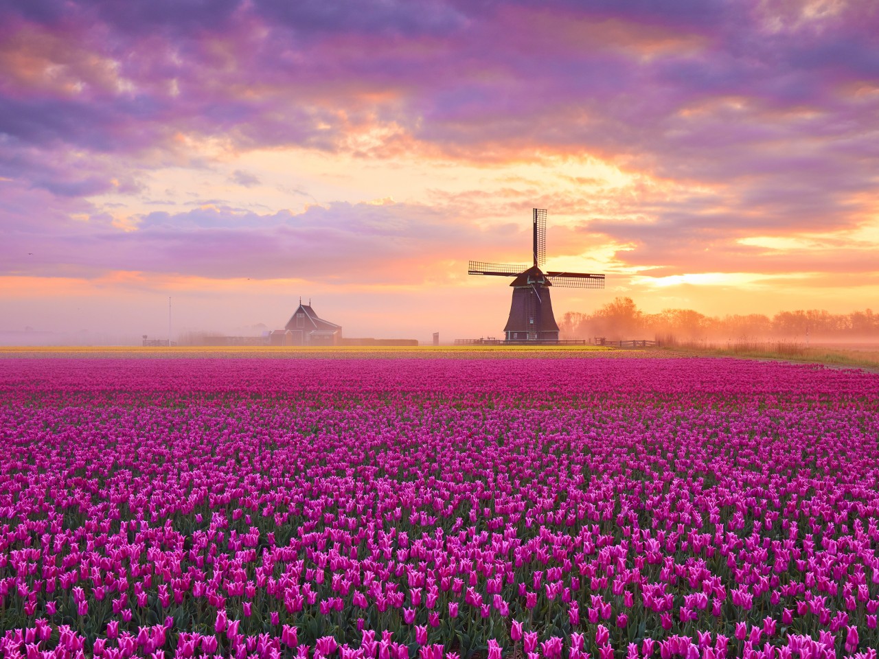 Windmil Tulip Field Netherlands Wallpaper - 1280x960