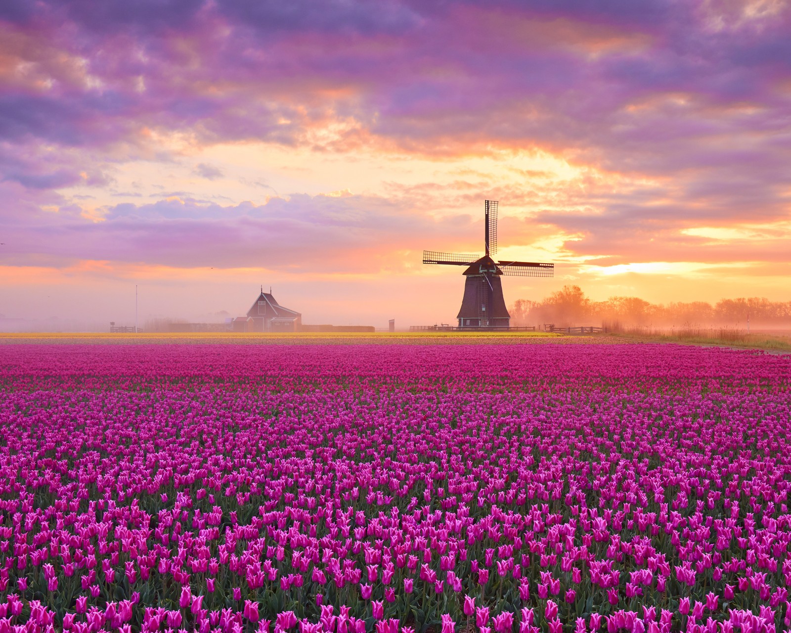 Windmil Tulip Field Netherlands Wallpaper - 1600x1280