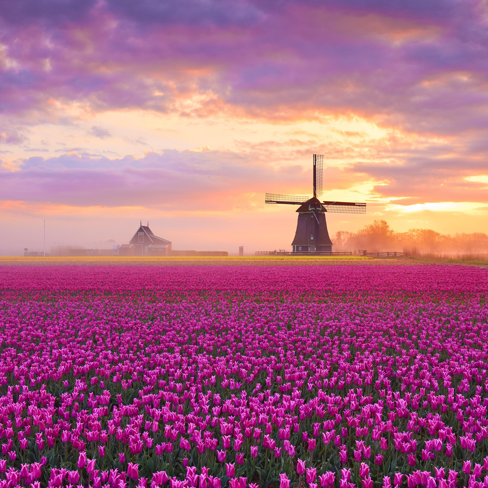 Windmil Tulip Field Netherlands Wallpaper - 2048x2048