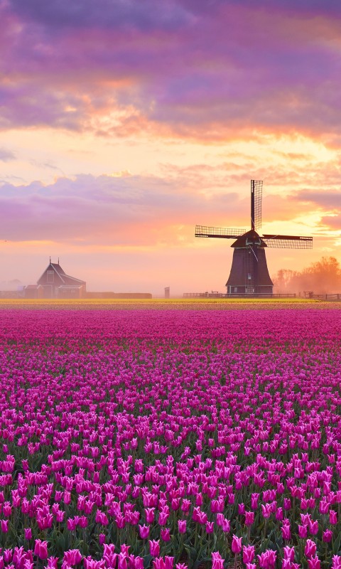 Windmil Tulip Field Netherlands Wallpaper - 480x800
