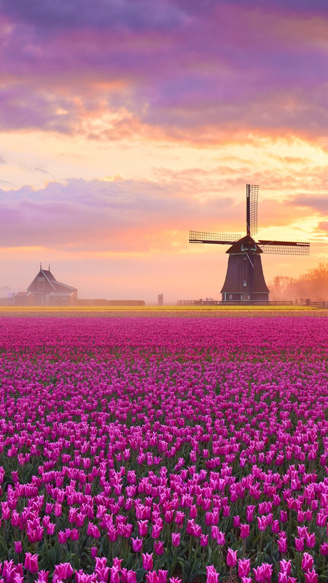 Windmil Tulip Field Netherlands Wallpaper - 640x1136